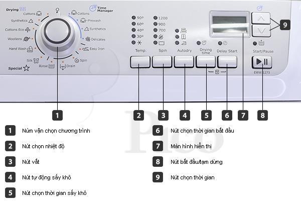 + Chức năng : nhìn chung về chức năng và chương trình giặt của máy giặt electrolux có sấy và máy giặt electrolux không có sấy là như nhau, sự khác biệt lớn nhất ở đây là máy giặt kèm sấy có chức năng sấy khô ngay sau khi giặt, dưới đây là bẳng điều khiể chức năng của máy giặt electrolux có sấy và máy giặt electrolux không có sấy