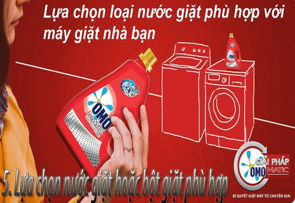 5. Lựa chọn nước giặt hoặc bột giặt phù hợp với từng loại máy giặt